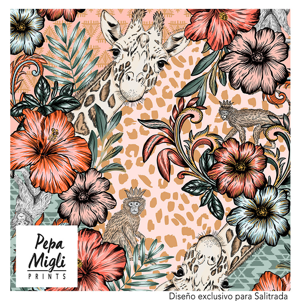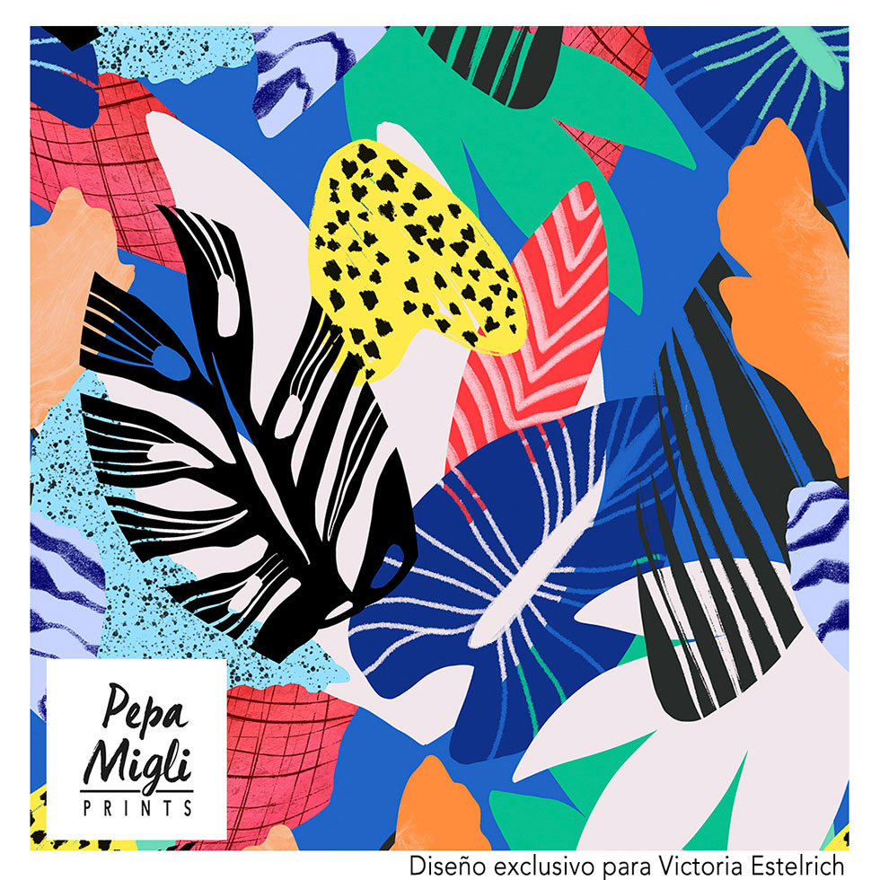 Mi nombre es Pepa Migli, soy diseñadora & ilustradora textil, me dedico a desarrollar estampas exclusivas a pedido. Principalmente estampas armadas en rapport para poder estampar por metro.