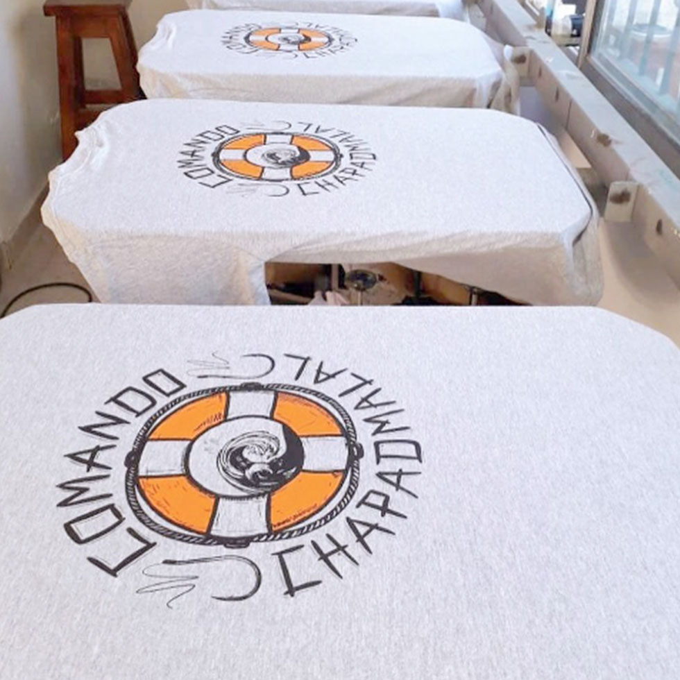 Estampados con serigrafía. Confección de remeras y bolsas de lienzo.