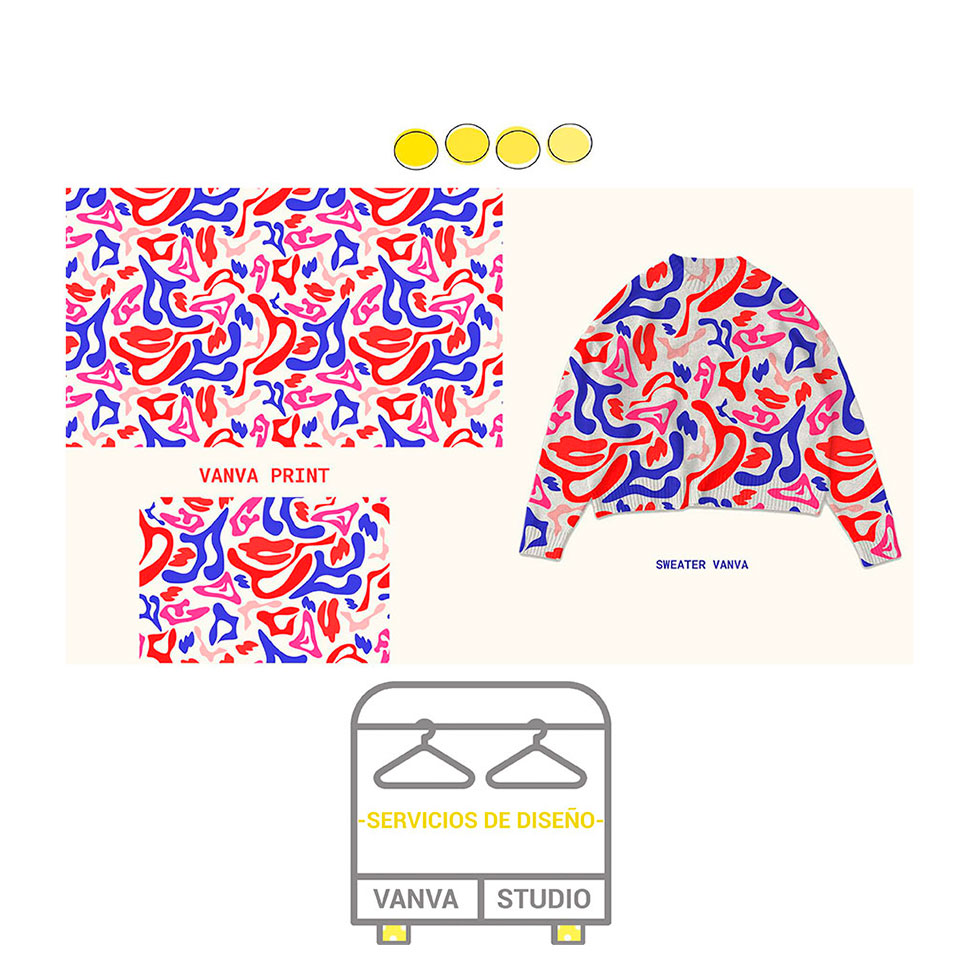 Consultoría de diseño estratégico, desarrollo de colección, moodboard, fichas técnicas, informes y relevamiento e investigación de tendencia. También, desarrollo de estampas textiles digitales posicionales y rotativas, etc.